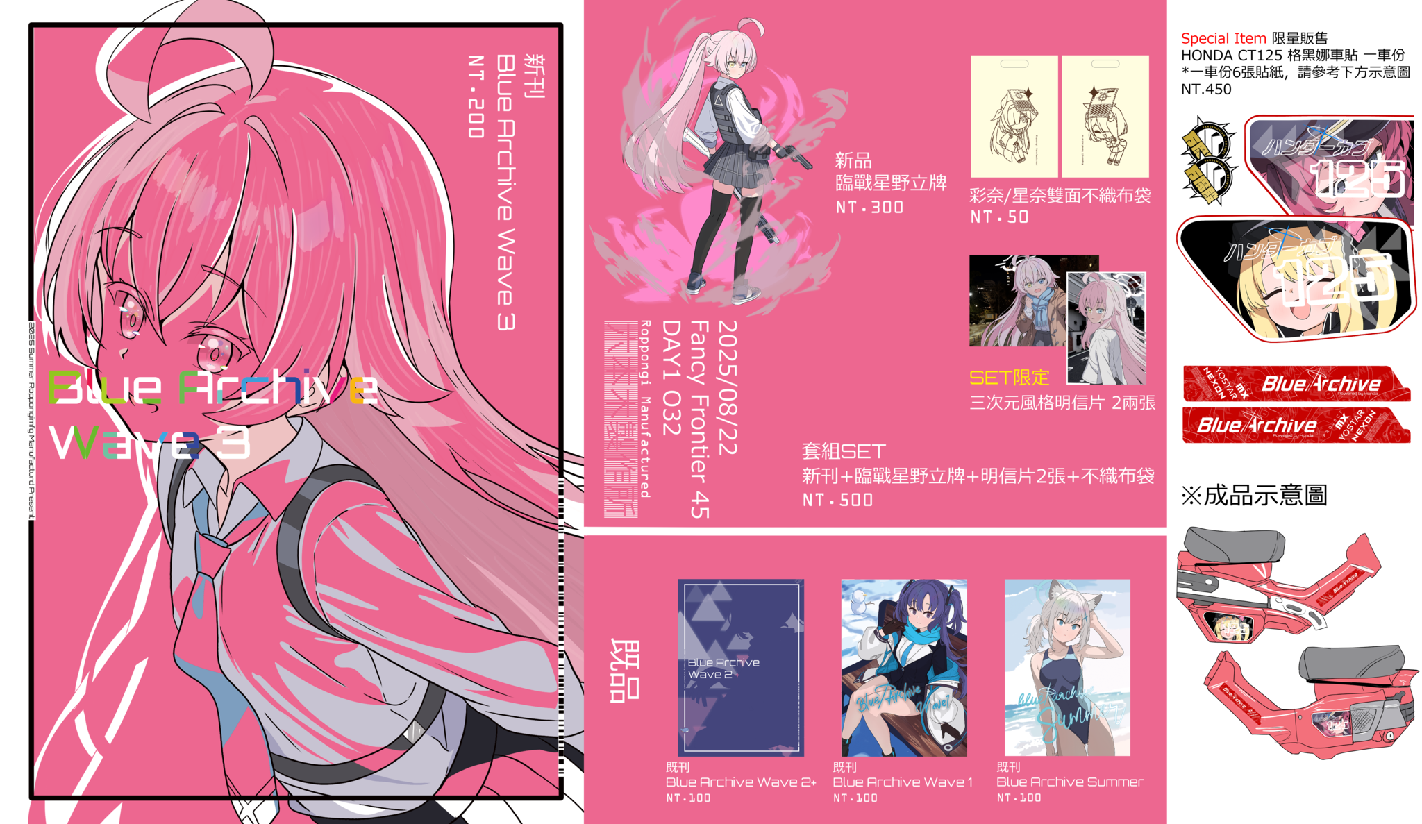 發佈於 2025 年 8 月 20 日2025 年 8 月 20 日 FF45 場前宣傳 基本上跟上次檔案ONLY一樣有新刊 很多星野有新立牌 很帥有CT125的車貼 很好看買SET送不織布袋還有一些賣不完的舊東西第一天在O32 請多隻腳 分享這篇內容: