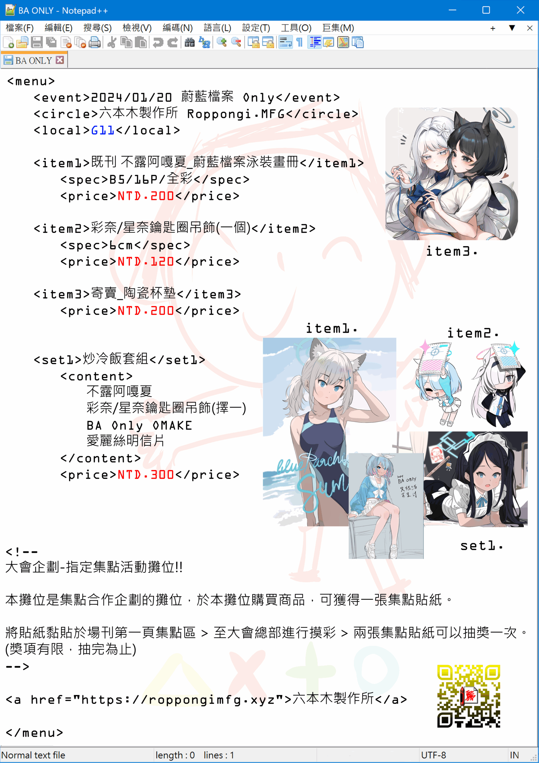 發佈於 2024 年 1 月 17 日2025 年 8 月 20 日蔚藍檔案ONLY 場前宣傳 希望如此前衛的DM大家看得懂XD 2024/01/20就是蔚藍檔案ONLY了雖然趕不出新刊只有既刊,但為了這一 … 閱讀全文〈蔚藍檔案ONLY 場前宣傳〉分享這篇內容: