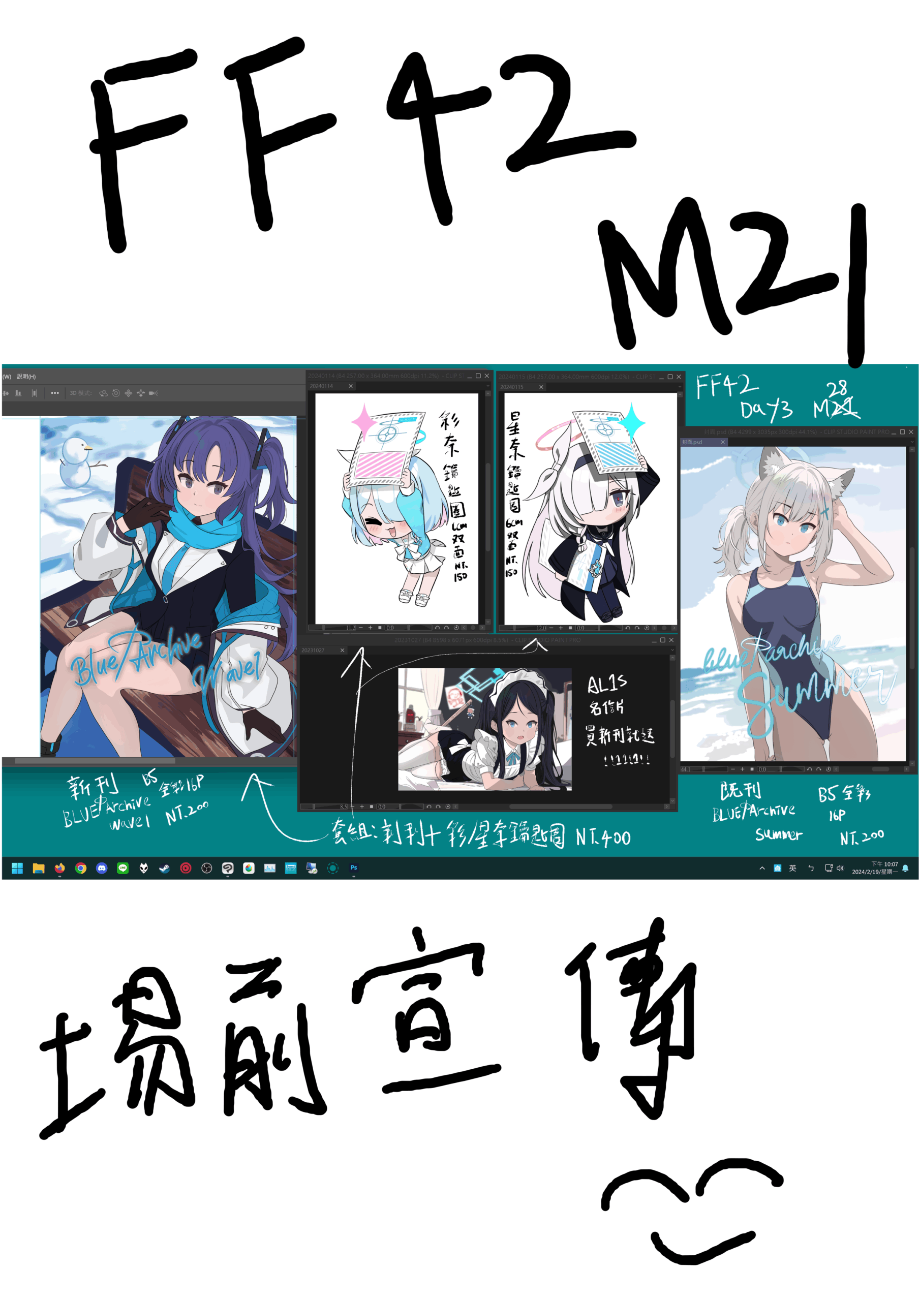 發佈於 2024 年 2 月 20 日2025 年 8 月 20 日FF42 場前宣傳 每次都好懶得做DM 是的,砍攤砍最兇的FF42終於又快到了。我報名六日結果只有禮拜日有上,但這不影響我出新刊的 … 閱讀全文〈FF42 場前宣傳〉分享這篇內容: